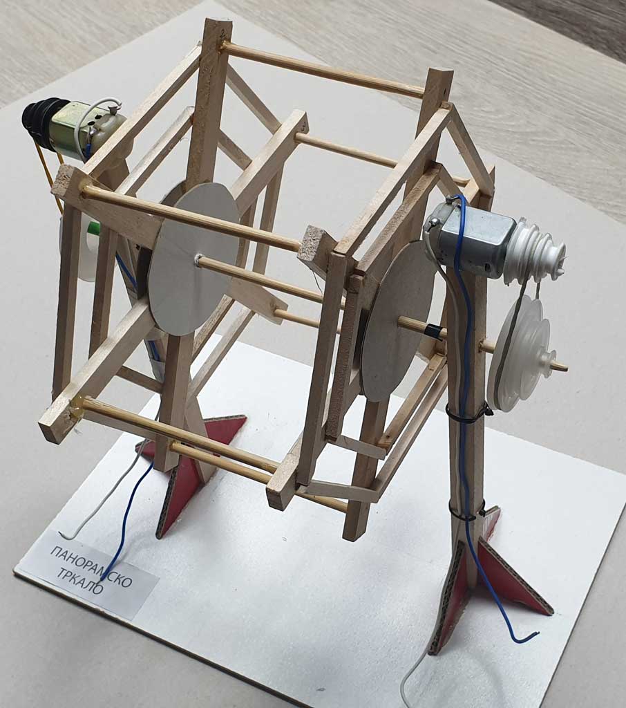 На видеото е прикажано панорамското тркало приклучено на моторчиња на батериски напон од 3 волти.